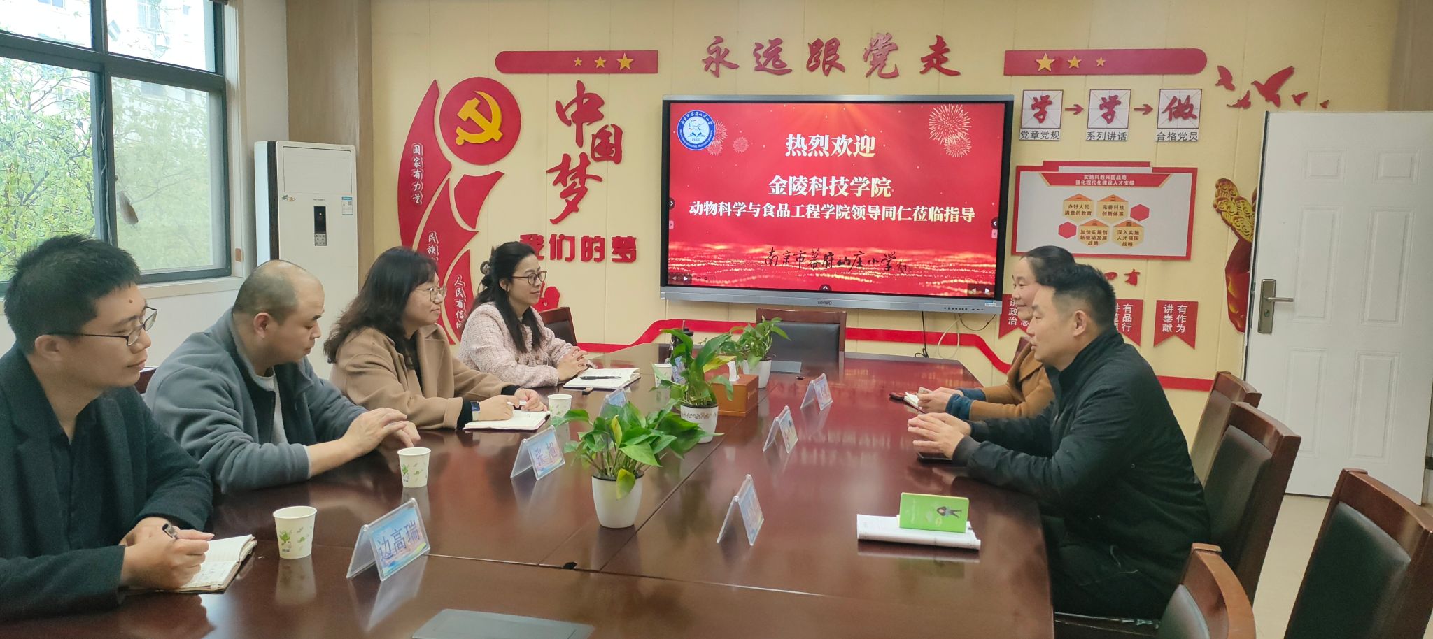 为深入贯彻大中小学思政教育一体化建设要求,推动思政教育与专业特色深度融合,3月30日下午,动物科学与食品工程学院党委副书记黄淑婧一行四人赴南京市幕府山庄小学,就思政教育与生态动物科普实践的协同落实开展交流研讨,幕府山庄小学毛小雷校长等校领导热情接待。