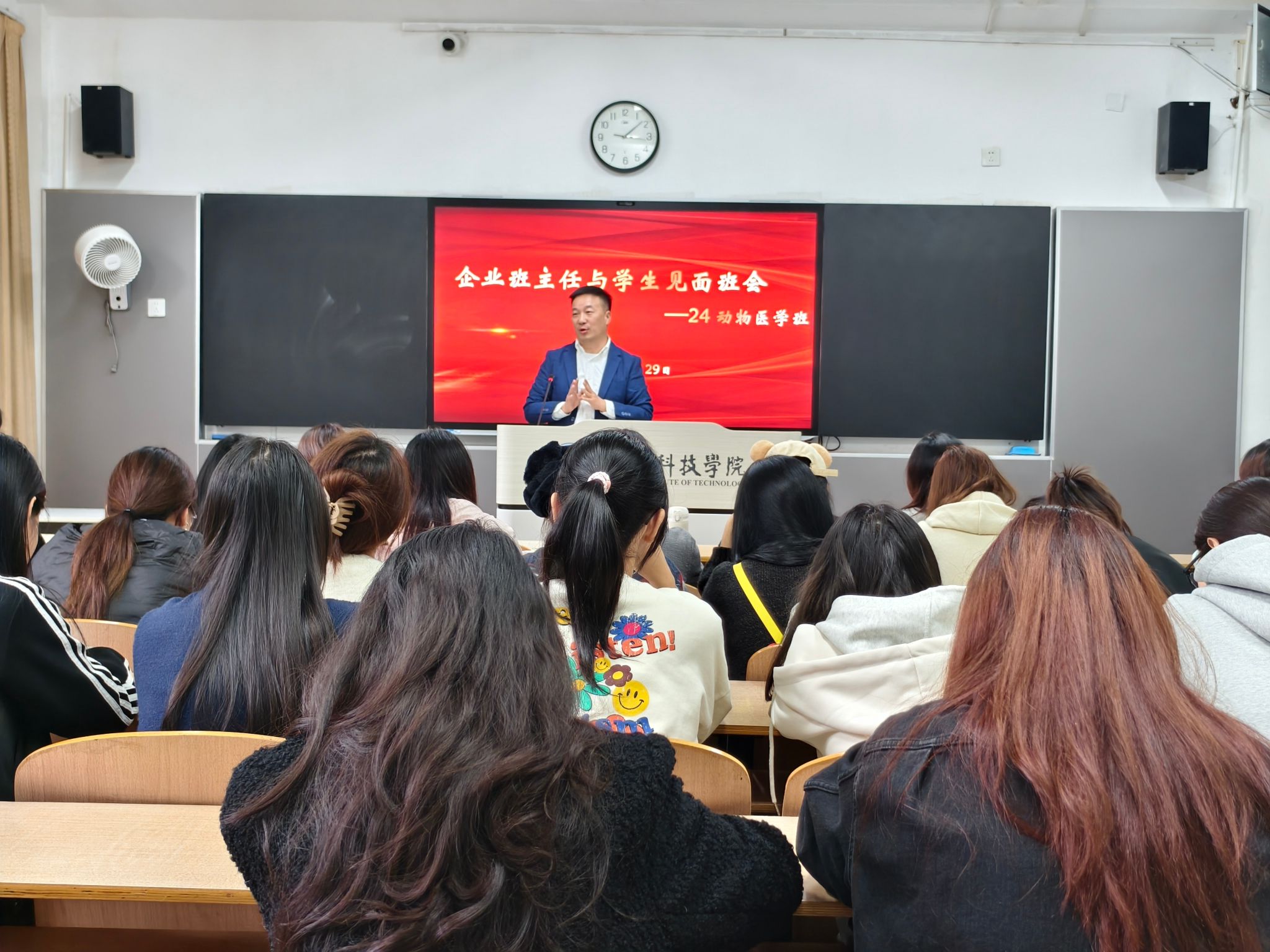 10月29日下午,动物科学与食品工程学院在幕府校区完成 2024级、2025级企业班主任聘任仪式后,随即组织受邀担任班主任的校友企业家们走进教室,为两个年级的学生开展主题班会,让校企协同育人快速落地。