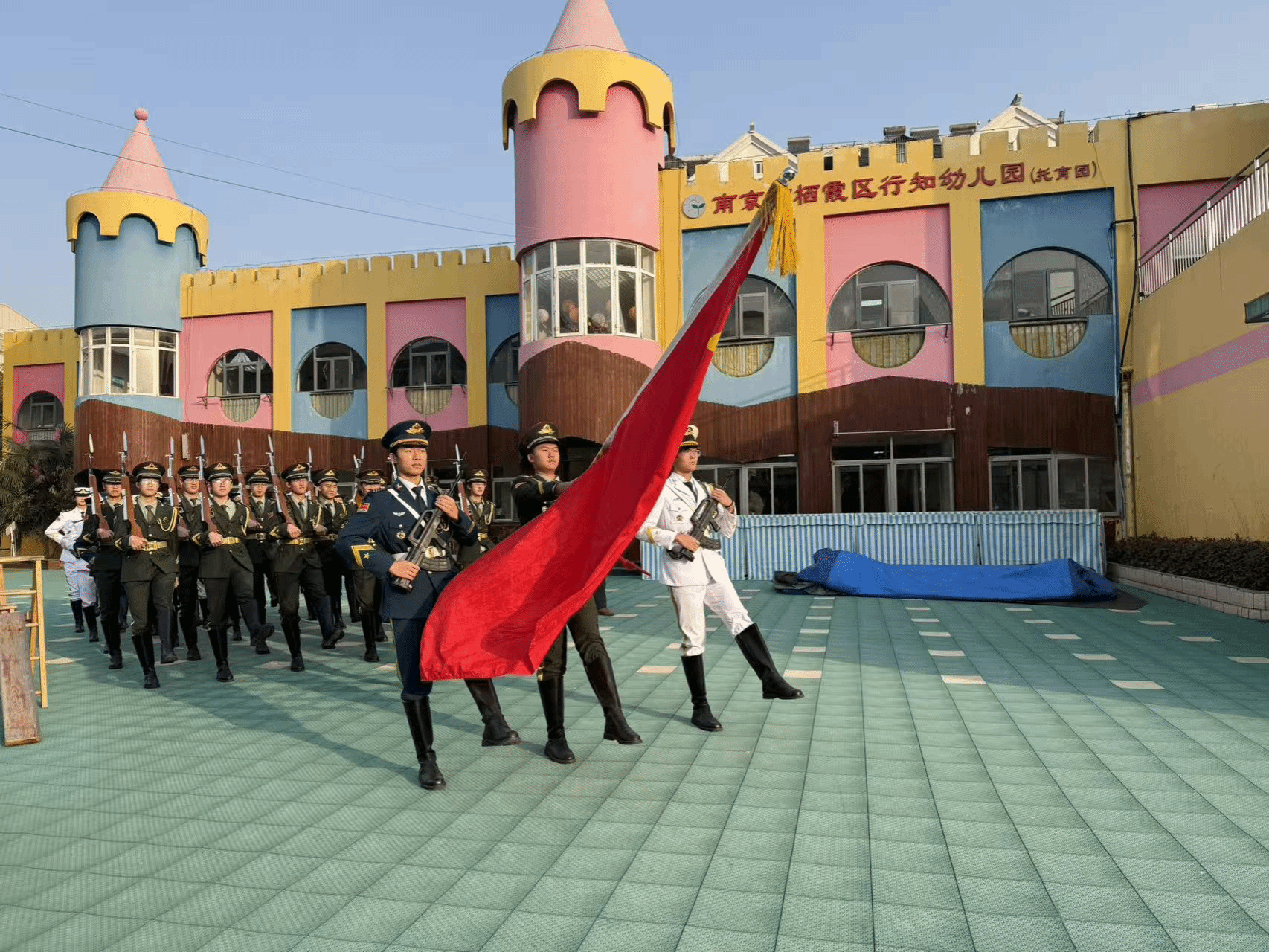大手牵小手,旗帜传薪火,激发爱国情怀新共鸣上午九点,升旗仪式在庄严的氛围中正式开始。金陵科技学院国旗班的同学们步伐铿锵,护卫着五星红旗走向旗台。他们挺拔的身姿、严谨的作风,展现了新时代青年在党组织培养下的良好精神风貌。行知幼儿园的孩子们在老师引导下,整齐列队,用稚嫩而专注的目光行注目礼。当雄壮的国歌奏响,五星红旗冉冉升起,“大手”与“小手”的爱国情感在这一刻同频共振,完成了庄严而温暖的传递。